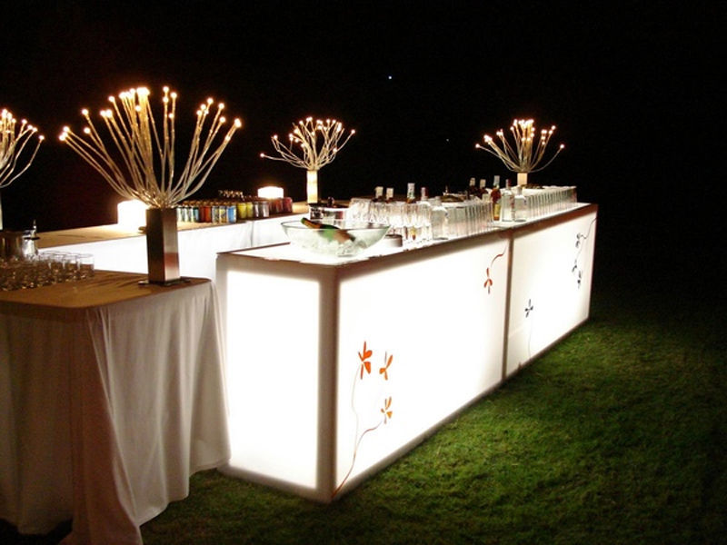Компания MisterVo! предлагает в аренду мобильные барные стойки со светодиодной подсветкой. Это красиво, удобно и экономно, позволяет раскрасить ваше торжество во все цвета радуги и организовать рабочее место для барменов. Стойки изготовлены из прочного пластика, подходят для использования как в помещении, так и на улице, и способны решать цветовое оформление любого праздника.