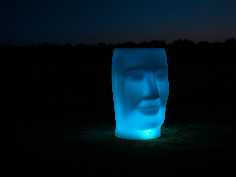 Объемная светящаяся фигура в форме человеческой головы может использоваться как сидение или столик для фужеров на вечеринке; на фестивале и карнавале - в качестве декоративного элемента - маска LED. Неплохо смотрятся эти LED-лица в качестве светильников слева и справа от ди-джея и его оборудования.