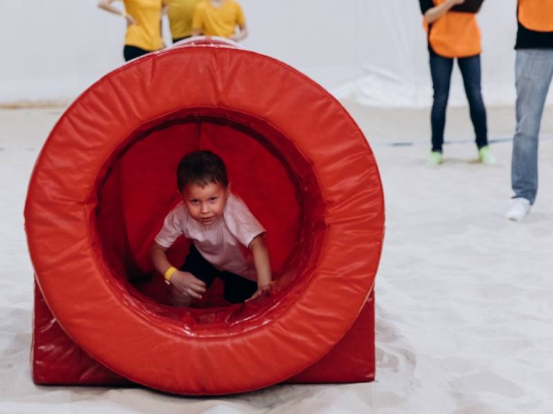 Универсальный и эффектный элемент, который мгновенно разнообразит любые спортивные соревнования, «Весёлые старты» или спартакиады. Простая и азартная задача: как можно быстрее пролезть внутри тоннеля.