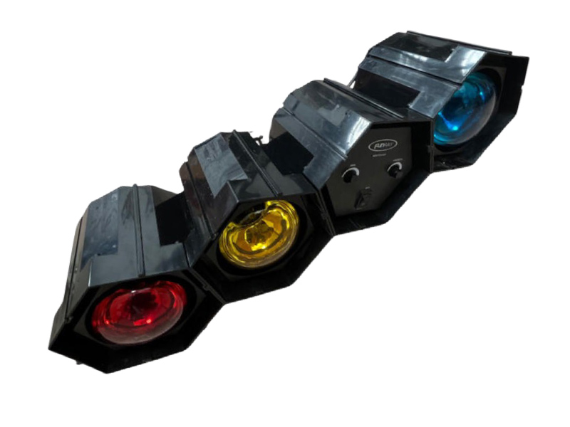 Блок управления, как и три световых элемента прибора, снабжены специальными направляющими для крепления всех в одну линию или другую форму. Переключается с эффекта бегущего огня на активный режим в такт звучащей музыке.