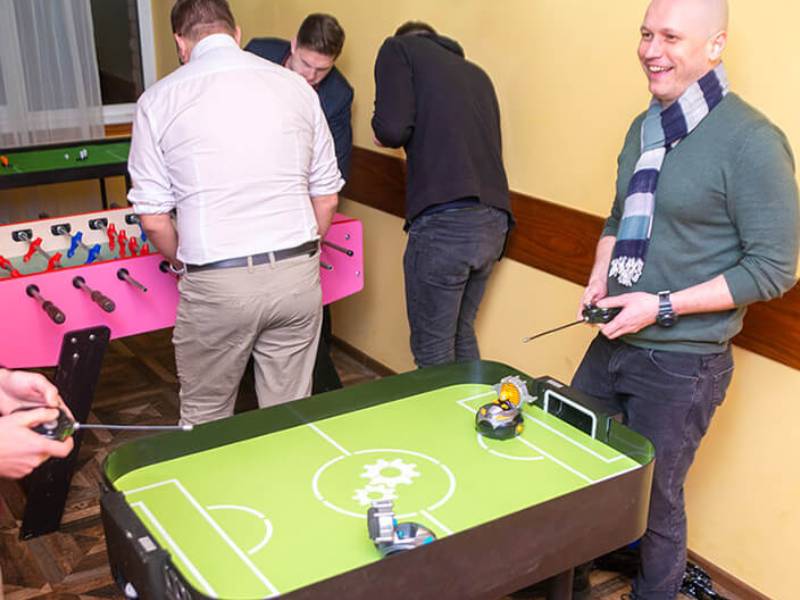Машины уже скоро заменят всё в этом мире. Но только не человеческие эмоции, которые они могут вызвать у вас во время этого турнира. Сюда идти можно даже на каблуках, потому что играете в футбол именно вы... но роботами! Интересно? Согласны. На поле один робот ваш, второй – соперника, и по классике нужно забить как можно больше голов. Кстати, эти роботы похожи на летающие тарелки, и главное, – не обнаружить после вечеринки в них брускетты.