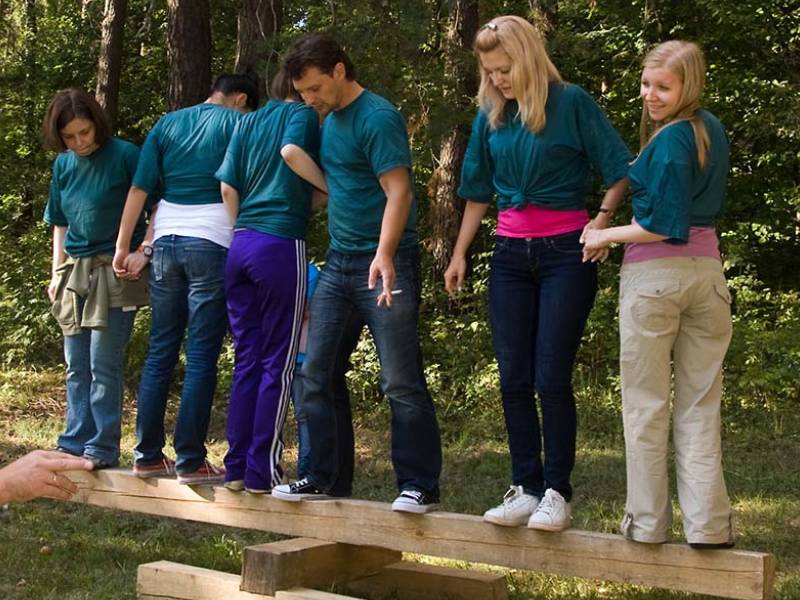 Командное упражнение на баланс, стратегию и доверие, в котором участникам необходимо своим весом уравновесить конструкцию и удержать её в горизонтальном положении. Во время выполнения задания весы не должны касаться земли, а вход на качели разрешён только по одному и исключительно с центра. Задание требует чёткой координации, продуманной последовательности действий и постоянного взаимодействия внутри команды.