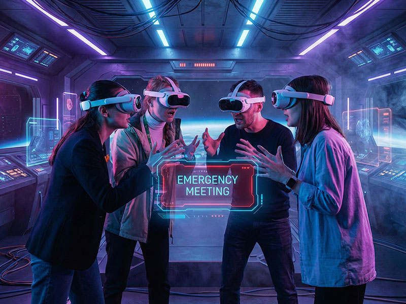 Командная игра в виртуальной реальности, где участники вычисляют предателей на космическом корабле.