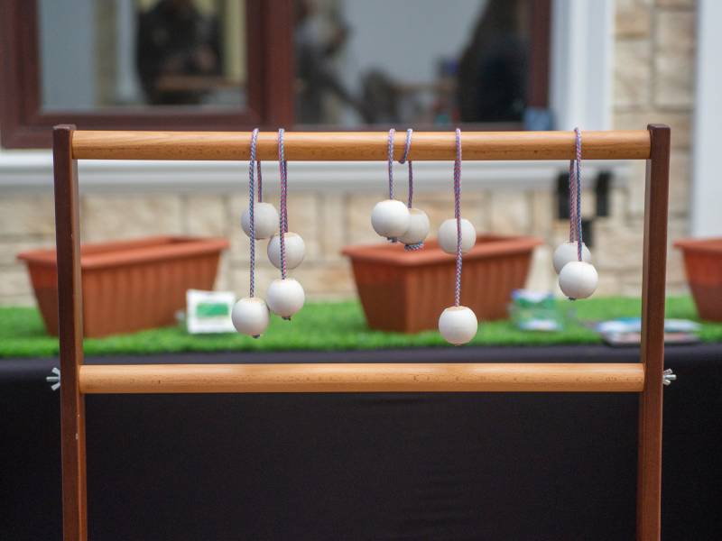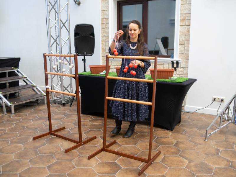 Увлекательная игра, не имеющая никакого отношения к Японии. Участники бросают балансы - шарообразные снаряды, соединённые между собой прочными шнурами, стремясь зацепить ими горизонтальные перекладины игрового поля. Чем выше расположение планки, тем больше очков приносит удачный бросок. Победителем становится игрок, набравший наибольшее количество баллов.